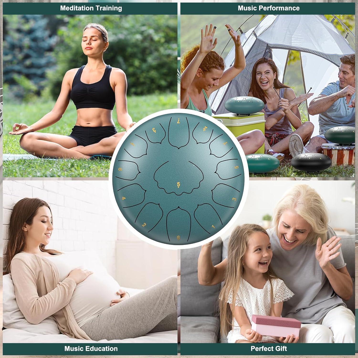 UNIQUE GIFT FOR FRIENDS: The steel rain drum's calming sounds bring clarity and peace of mind, making it a thoughtful gift for loved ones. Easy to play with musical drumsticks or by the natural strike of rain. This tongue rain drum will be a unique present for women, or men, as Christmas, birthdays, get-well wishes, or white elephant exchanges.